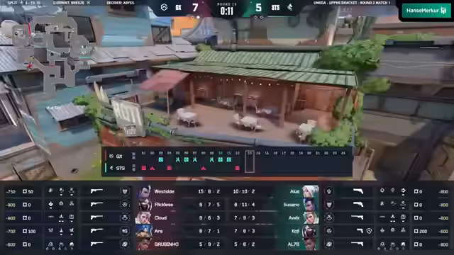 00:37:53Auf der ersten Map Split beginnt Giant X sehr stark. Westside schafft einen fast Ace in der ersten Runde. Jedoch finden die Stallions ihre Stärke in den Mid-Fights und zeigen ein furchtloses, aggressives Spiel, das Giant X zunächst Probleme bereitet. Die Stallions können mehrere Runden für sich entscheiden, indem sie gezielt Openings finden und diese zu Rundengewinnen umwandeln. Giant X kämpft sich jedoch zurück, verbessht seine Koordination und stabilisiert seine Defense. In der zweiten Halbzeit zeigt Giant X seine Überlegenheit im Aim und in der Rotation, gewinnt die Mehrheit der Runden und schließt die Map mit einer deutlichen Führung ab.
