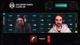 02:15:00Nach dem Match Giant X vs. Team Stallions blickt der Stream bereits zum nächsten hochkarätigen Duellen: Fokus gegen Team Vitality. Fokus geht als DACH-Region-Team in das Match, während Vitality als favorisiertes VCT-EMEA-Team gilt. Die Kommentatoren betonen die enorme Erfahrung und den Star-Status von Vitality mit Spielern wie Derk und Chronicle. Gleichzeitig heben sie das Potenzial und die 'Bock' bei Fokus hervor, gestärkt durch jüngste starke Leistungen, insbesondere von Spieler Pace.