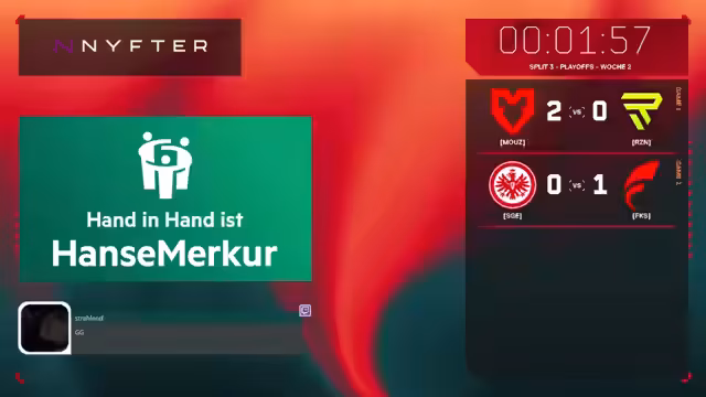 05:52:16Das Spiel galt in die Overtime, nachdem beide Teams 12 Runden erspielt hatten. In der Verlängerung setzte sich Eintracht Frankfurt letztendlich durch und gewinnt die Map 13:12. Eintracht Frankfurt qualifiziert sich somit für die Finals in Hamburg. Es war ein unglaublich intensives und emotionales Match, bei dem beide Teams alles gegeben haben.