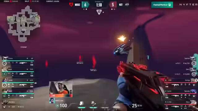 01:20:43Auf der zweiten Map Split ergriff NXT sofort die Initiative. Das Team dominierte die Anfangsphasen der Map und konnte einen klaren Vorsprung herausspielen. Spieler wie Seri und Lime trugen mit präzanten Schüssen und klugen Positionierungen maßgeblich zum Erfolg bei. Die aggressive Vorgehensweise von NXT wirkte auf Maus zunächst überwältigend und verlieh dem Team wichtige frühere Runden.