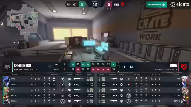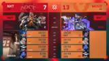 01:51:32In der zweiten Hälfte gelingt MoūZ ein ausgeglichenes Spiel, doch NXT kämpft sich punktgleich heran. Es kommt zu einem dramatischem Finish bei 11:11, wo beide Teams alles riskieren. In einer extrem knappen Situation verpasst MoūZ den möglichen Multi-Kill, der das Spiel entschieden hätte. NXT nutzt die Chance zur Entscheidung und schafft das 13:11. Das Comeback wird als beeindruckend angesehen, da NXT nach einer starken ersten Hälfte für MoūZ noch zurückkam.