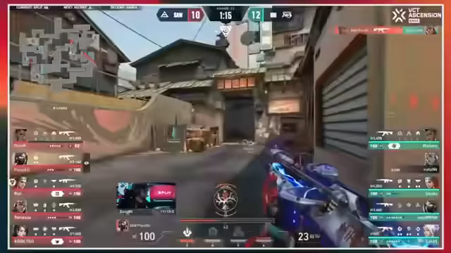 06:04:32Das letzte Match des Abends beginnt auf Ascent. CGN startet im Attack und führt einen Mitteaufbau an. Die Runde wird durch starke Einzelleistungen entschieden, wobei Rizwan von 6GPA einen Doppelkill erzielt, was jedoch nicht ausreicht, um die Runde zu gewinnen. CGN nutzt seine Überzahl geschickt, um den Spike erfolgreich zu verteidigen und die erste Runde mit 1:0 für sich zu entscheiden.