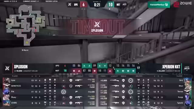 04:10:21NXT wird als Favorit für den Klassenerhalt gesehen, zeigte auf Haven eine konstant starke Leistung. Terox wird als Man of the Match gefeiert, während Explosion sich an die No-Flashes-Strategie klammert, die auf Sunset jedoch eine Herausforderung darstellen könnte. Nun geht es auf den Map-Pick von Explosion, Sunset, wo das Team zeigen muss, dass es noch kampffähig ist.