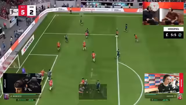 01:39:11Das Duell zwischen HSV und Schalke 04 entwickelt sich zu einem offensiv geprägten Spiel mit vielen Toren. Perkicks für HSV geht früh in Führung, während Schalke durch Ockern immer wieder antwortet und das Spiel nicht abschütteln kann. Kommentatoren heben die hohe Qualität beider Teams hervor und bewundern besonders Spieler mit 99er-Items, die präzise Schussvarianten wie den Finesse-Schuss nutzen. Beide Teams agieren sehr aggressiv nach vorne, was zu einem permanenten Tor-Rhythmus und vielen Torchancen führt.
