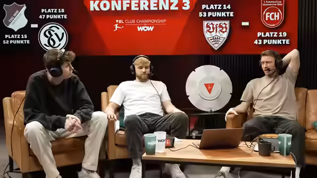 00:10:38Nach einer kurzen Begrüßung startet der Stream offiziell in die Playoffs der VW Club Championship bei WoW. Ziel ist es, die letzten acht Plätze für das große Finale in Hamburg zu ermitteln. Es handelt sich um K.o.-Spiele, in denen jedes Spiel den Ausschluss eines Teams bedeutet. Der Co-Moderator Keanu ist nach kurzer Verletzungspause wieder dabei. Auch die Moderatoren Mo Auba und Richard begrüßen die Zuschauer und gehen auf den bevorstehenden Termin des Finales sowie auf die Partnerschaft mit WOW ein, wo Bundesliga-Topspiele übertragen werden.