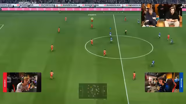 04:43:45Nach einem Tor für Freibug kehrt der Fokus auf das Duell Gianluca gegen Berkay zurück. Gianluca schießt die Führung auf 2:1 aus, während Berkay per Flachschuss auf 2:2 ausgleicht. Kommentatoren loben die individuelle Klasse beider Spieler, auch wenn sie deren mentale Stabilität, insbesondere bei Gianluca, in Frage stellen. Das Spiel bleibt bis kurz vor Schluss offen und voller Wendungen.
