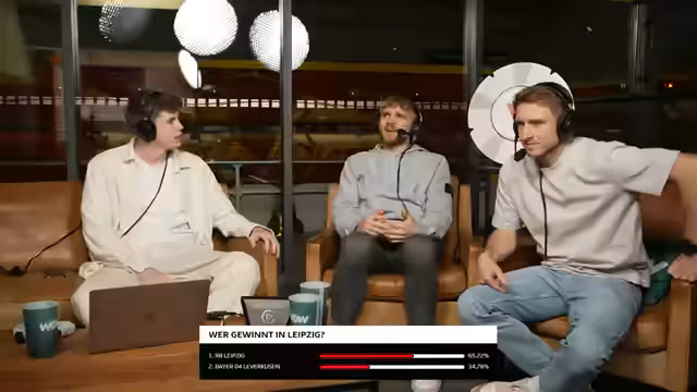 06:05:24Nach Leverkusens Sieg im ersten Spiel wird über Tipps für das Finale gegen Levi Finn spekuliert. Der Chat favorisiert Sean Landwehr (1 für Leverkusen), während Unentschieden (2) und Sieg für Levi (3) diskutiert werden. SpielerNervosität wird thematisiert: Leverkusen wirkt gelassen, während Leipzig auf den Gegner wartet. Levi Finn als amtierender deutscher Meister wird als ruhiger, konzentrierter Typ beschrieben, der unter Druck reagieren muss.