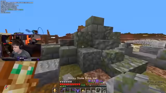 00:18:45Der Fokus des Streams liegt auf dem weiteren Bau des Turms. Es werden verschiedene Blöcke verwendet, darunter Trappisten und Trapdoors, wobei der Streamer auf die Besonderheiten von Windchargern aufmerksam macht, um unbeabsichtigte Aktivierungen zu vermeiden. Ein großer Teil der Zeit wird mit der Beschaffung weiterer Bausteine verbracht, insbesondere von Moos (Moss) und verschiedenen Varianten von Mauersteinen wie Tuff und verwittertem Stein (Mossy Stonebrick). Die Suche führt den Streamer zu einer geerbten Moosfarm auf dem Server, die aber erst aktiviert werden muss.