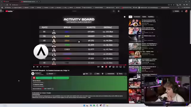 00:48:59Alex wird von den Hunters gefangen genommen, nachdem er eine aufregende Verfolgungsjagd durch Bangkok erlebt hat. Viele Zuschauer zeigen ihre Anerkennung für seine Leistung in der Staffel. Alex' Story wird als besonders gelungen beschrieben: Er hatte Höhen und Tiefen, darunter eine Verfolgungsjagd durch die Kanalisation und einen Krankenhausaufenthalt. Sein Abschied wird emotional gestaltet und die Zuschauer loben seinen Kampfgeist und seine Kreativität. Nach Alex' Catch verbleiben noch zwei Spieler im Spiel, Carsten und der Streamer selbst.