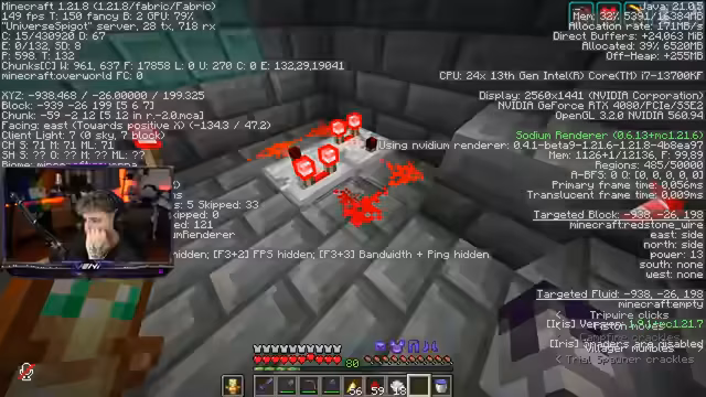 02:34:05Das System der automatischen Farm wird live getestet. Der Streamer fährt mit einer Konstruktion durch die Trial Chamber, um die Spawner zu aktivieren. Dabei stellt er fest, dass das System zwar funktioniert, aber einige Spawner nicht reagieren. Die Mechanik basiert darauf, dass der Fahrer mit einem Trank ein Omen-Effekt auslöst, der den Raid-Omen-Effekt überschreibt und das Spawnen der Mobs in der Trial Chamber auslöst. Es werden Schlüssel für die Vaults farmen, die jedoch nur einmal pro Chamber geöffnet werden können.