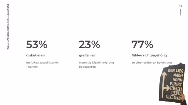 00:22:43Baro Vicenta Ragabert, Juristin und Sprecherin für sozial-ökologische Gerechtigkeit bei Greenpeace Deutschland, beginnt ihre Keynote mit der Feststellung, dass 'Zukunft' ein Wort ist, das von allen unterschiedlich verstanden wird und über das in den kommenden Jahren viel gestritten werden wird. Sie möchte die Zuhörer mit Geschichten, Zahlen und Ideen wappnen, um diese Diskussionen gestärkt zu führen. Sie verweist auf alarmierende Zahlen: 71 Prozent der Weltbevölkerung leben in Autokratien, und 63 Prozent der jungen Menschen haben Angst vor dem Klimawandel, wobei nur 19 Prozent glauben, durch ihr eigenes Handeln etwas bewirken zu können. Angesichts dieser Situation fordert sie, die Zukunft zurückzuerobern ('Reclaim the future'). Sie betont die Bedeutung des Protests auf der Straße und präsentiert Studien, die zeigen, dass 53 Prozent der Demonstranten danach mehr über politische Themen diskutieren, 23 Prozent bei Diskriminierung eingreifen und 77 Prozent sich als Teil eines großen Ganzen fühlen. Auch wenn die direkten Auswirkungen auf die Politik nicht immer sofort sichtbar sind, führen Klimademonstrationen dazu, dass sich 1,2 Prozent mehr Menschen in der Bevölkerung Gedanken über den Klimawandel machen, was eine erhebliche Wirkung darstellt, insbesondere bei Menschen, die sich zuvor nicht damit beschäftigt haben.