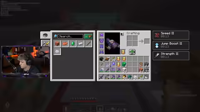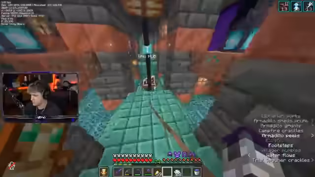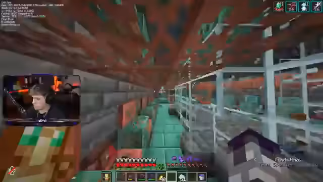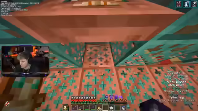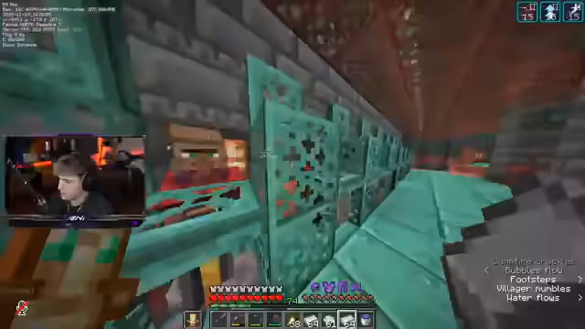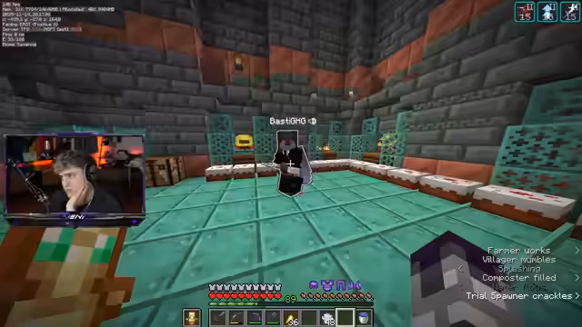 00:07:39Der Streamer begrüßt die Zuschauer und berichtet von einem Problem mit seiner Beacon-Farm, bei der ein platzierter Stonebrick den Wasserkanal blockierte und somit tagelang keine Items aus den Trialspawnern geliefert wurden. Er überlegt, dies Spark zu melden. Zudem hat er off-stream an einer Bambusfarm weitergebaut, deren Stopper nun dank eines Discord-Tipps von '4Nerds' funktioniert. Die aktuelle Engstelle liegt nun bei den Farmen selbst und nicht mehr beim Abzugssystem. Ein Problem beim Craften von Slabs aus Bambusholz, bei dem stattdessen Pressure Plates oder Buttons entstehen, konnte trotz vieler Versuche und Tutorials noch nicht gelöst werden. Eine Hopper-Clock wurde ebenfalls bei der Farm integriert, um die Ernte zu automatisieren und einen kontinuierlichen Fluss zu gewährleisten, wobei Deepslate als Notfallpuffer dient.