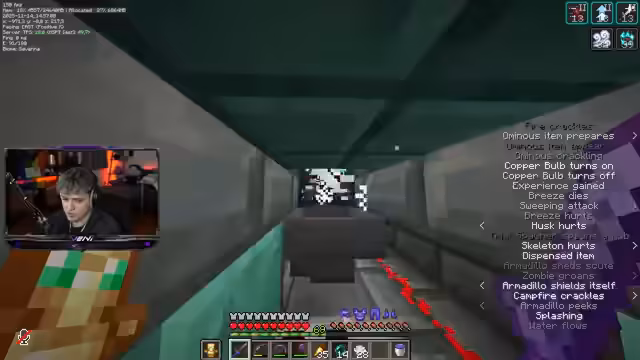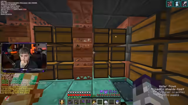 00:07:39Zu Beginn des Streams bemerkt der Streamer, dass seine Bambusfarm seit Tagen keine Items mehr produziert. Nach einer Untersuchung stellt er fest, dass ein unbekannter Spieler einen Steinziegel direkt auf seinem Beacon platziert hat, wodurch der Wasserfluss für die Items blockiert wurde. Dies ist der Grund, warum ihm die Breeze-Rods ausgegangen sind und seine Farmen nicht mehr korrekt funktioniert haben. Der Streamer ist über dieses Vorgehen äußerst verärgert und spricht von einer dreisten Sabotageaktion, die ihm kontinuierlich wichtige Ressourcen stiehlt.