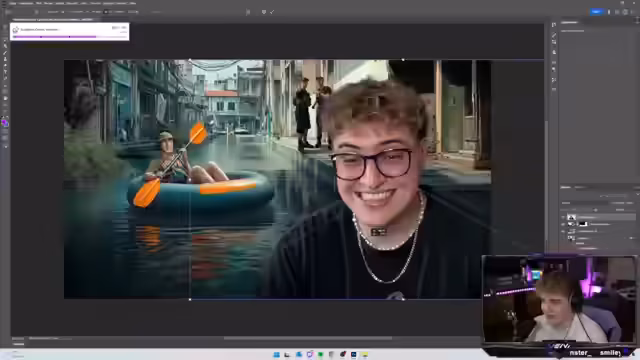 00:11:45Der Streamer demonstriert den Prozess der Thumbnail-Erstellung für den Zweitkanal unter Verwendung von Photoshop. Zuerst wird das aktuelle Manhunt-Thumbnail von YouTube kopiert und in Photoshop eingefügt. Dann wird das eigene Gesicht auf der rechten Seite des Thumbnails platziert. Mit dem Polygon Selection Tool wird der Textbereich ausgewählt und mit generativer KI aufgefüllt, um das Bild nahtlos zu erweitern. Der Streamer erklärt, dass die nahtlose Generierung ein Indiz dafür ist, dass die Basis des Thumbnails bereits KI-generiert ist. Ein passendes Gesicht mit Brille wird aus dem Thumbnail-Archiv ausgewählt, eingefügt und mit Schatteneffekten versehen. Helligkeit, Kontrast und Sättigung werden angepasst, um das Gesicht hervorzuheben. Anschließend wird ein Weichzeichnungsfilter angewendet, um den Look abzurunden. Der Streamer betont, dass dies ein Low-Effort-Thumbnail für den Zweitkanal ist und zeigt, wie einfach und schnell ein solches Design erstellt werden kann.