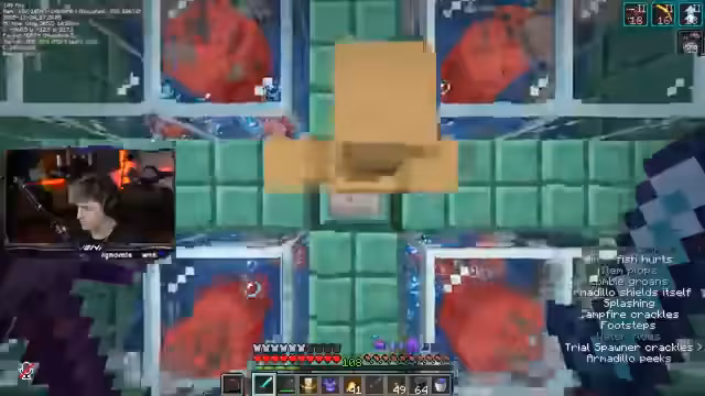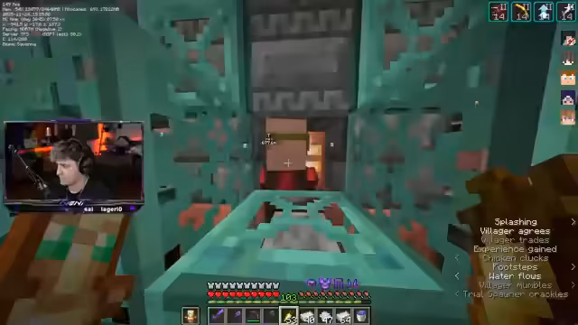01:19:44Der Streamer befasst sich intensiv mit dem Bau einer Creeper-Farm unter einer Trial Chamber. Er untersucht die Spawn-Möglichkeiten von Mobs, stellt jedoch fest, dass anscheinend keine Mobs im unterirdischen Loch erscheinen. Dies führt zu einer ausführlichen Diskussion im Chat über die Spawn-Radien von Schneegolems und die möglichen Grenzen der Trial-Chamber-Boundingbox. Es wird vermutet, dass die Struktur selbst als Spawn-Verhinderer fungiert, was den Bau einer effektiven Farm unmöglich macht. Der Streamer experimentiert daher mit verschiedenen Lösungsansätzen, wie dem Vergrößern der Fläche oder dem Verschieben der Mobs per Wasserstrom.