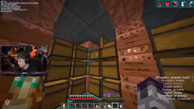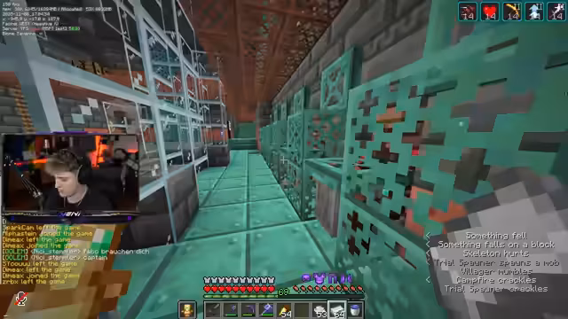 01:32:34Der Streamer arbeitet an der Verbesserung der automatischen Farm-Systeme. Es wird an einem Abwassersystem für die Spawner und dem Filtern der gesammelten Items gearbeitet. Besonders die Filter-Logik für verschiedene Gegenstände wie Breeze Rods, Keys und Nahrungsmittel wird perfektioniert. Die Kisten werden teilweise geleert, um Platz für neue Drops zu schaffen. Es gibt auch Pläne, einen Hund zur Breeze-Farm einzusetzen, dessen Machbarkeit jedoch geprüft werden muss.