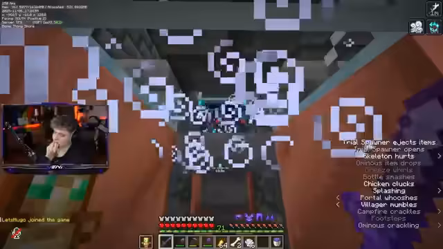 01:32:34Der Streamer konzentriert sich auf den Bau und die Optimierung von Item-Collection-Systemen, insbesondere für die Abwasserpumpen und die Spawner-Farmen. Es wird ein weiterer Ominous-Durchgang durchgeführt, um die Systeme zu testen und zu leeren. Die vorhandenen Collection-Systeme für die meisten Spawner sind bereits automatisiert, es fehlen jedoch noch zwei Räume. Es wird überlegt, ob Hunde eingesetzt werden könnten, um die Breezes zu töten, ähnlich wie es bei Widowskeletten funktioniert, wobei die Frage aufkommt, ob Breezes Hunde angreifen würden. Die Kisten werden größtenteils geleert, um Platz für die neuen Item-Rutschen zu schaffen. Die Filter für die verschiedenen Items wie goldene Karotten, Ominous Keys, Baked Potatoes, Brot, Chicken, Steak, Breeze Rods, Rotten Flesh und Knochen sind bereits fertiggestellt. Zudem wird die Railgun-Mechanik als zukünftiges Projekt erwähnt, die als sehr komplex und aufwendig beschrieben wird, aber vielversprechende Möglichkeiten für den Item-Transport bietet.