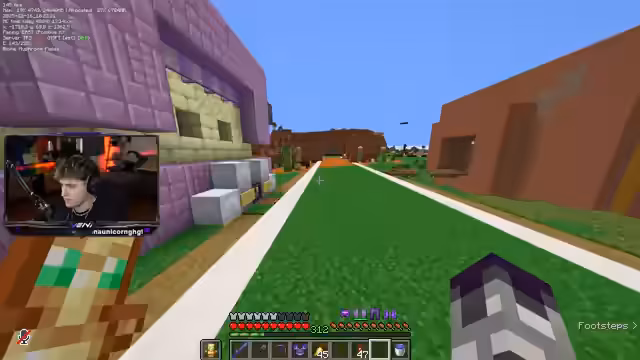 04:13:34Veni sammelt gezielt Materialien für den Weiterbau, insbesondere Rooted Dirt, das er unter Azalea-Bäumen abbaut. Er stellt fest, dass die Mengen ausreichen und ergänzt dies durch den Ertrag von Dschungelholz und weiteren dekorativen Blöcken wie Tuff und Mossy Cobblestone. Während des Bauprozesses plant er, Wege zu verbinden, Strukturen zu platzieren und die Landschaft mit Elementen wie Pfaden, Zäunen und Laternen zu optimieren, wobei er sich an Feisters vorhandenen Strukturen orientiert.