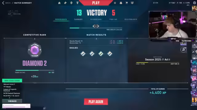 00:13:14Der Stream konzentriert sich hauptsächlich auf Valorant. Der Streamer spielt den Agenten Cypher auf verschiedenen Maps wie Haven und Split. Er analysiert sein eigenes Gameplay und das seines Teams, diskutiert taktische Fehler und strategische Entscheidungen, wie beispielsweise das Setzen von Wires, das Timing von Peeks und die Nutzung von Smokes. Er äußert Frustration über das Verhalten des Teams, dem er vorwirft, nicht auf seine Anweisungen zu hören, was zu verlorenen Runden führt. Das Ziel ist ein Uprank, daher ist er auf gute Statistiken und MVP-Performance angewiesen.