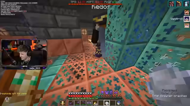 00:14:13Kedos kämpft weiterhin mit extrem niedrigen FPS, teilweise sogar bei null, was das Spiel unspielbar macht. Es wird spekuliert, dass dies der letzte Tag seines alten PCs sein könnte, da er bereits einen neuen bestellt hat. Um den Start zu ermöglichen, wird Kedos von ViniCraft mit Windcharges in Position gebracht, während er selbst aufgrund der technischen Probleme kaum Eingaben machen kann. Die Render Distance wird reduziert, um die Performance zu verbessern, doch die Lage bleibt kritisch. Die Spannung steigt, ob Kedos es schaffen wird, in das Startrohr zu gelangen, bevor die Nacht hereinbricht und Creeper eine Gefahr darstellen könnten.