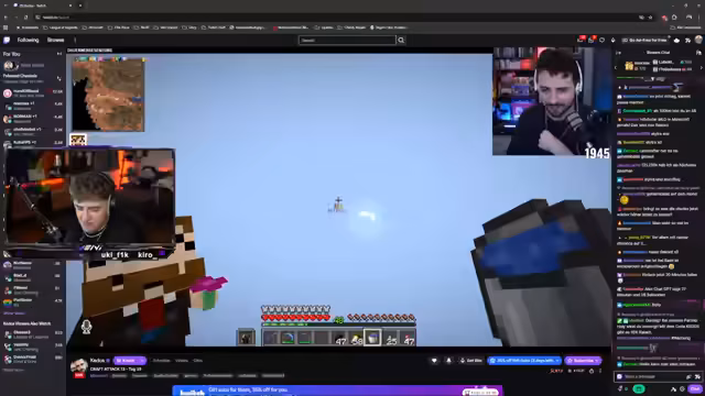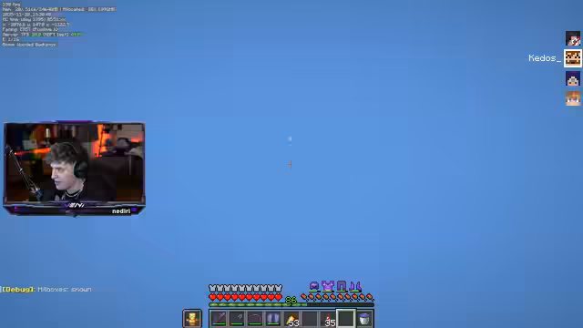 00:06:03Der Stream beginnt mit der Ankündigung, Kedos in die Stratosphäre zu schießen, während gleichzeitig Server-TPS-Probleme auftreten, die von 20 auf 12 fallen. Kedos bemerkt, dass dies an ihm liegen könnte und macht sich auf den Weg zum GHG Hub. Währenddessen stellt sich heraus, dass Naughty Kedos' Eisenfarm ausgeschaltet hat, was zu Verwirrung und Problemen führt. Kedos hat weiterhin mit Game-Crashes zu kämpfen, die ihn daran hindern, sich normal zu bewegen, und es wird vermutet, dass dies an seinem alten PC oder dem Server liegt. Trotz der Schwierigkeiten ist Kedos entschlossen, den Flug anzutreten.