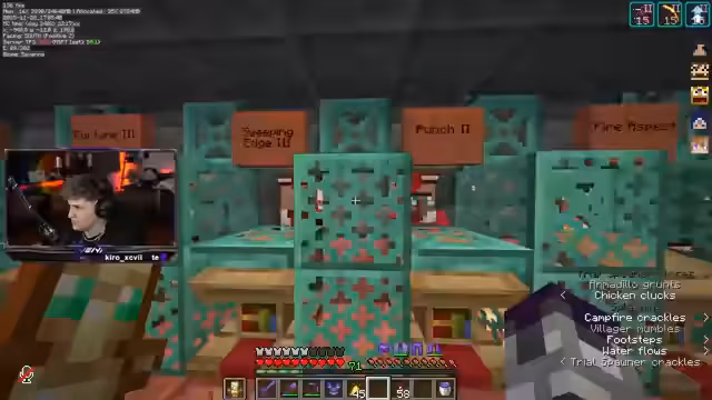 05:04:01Der Streamer demonstriert die Effizienz des Tradings mit Villagern, insbesondere mit Papier-Villagern, die bessere Trades als Bambus-Villager bieten und unendliche Emeralds ermöglichen. Die Papierfarmen sind besonders ergiebig, da hinter jedem Fletcher zwei Doppelkisten voll mit Papier stehen, die sich schnell wieder auffüllen. Im Gegensatz dazu füllen sich die Bambusfarmen langsamer, da Sticks häufiger getradet werden. Es wird auch ein Itemfilter für Pfeile eingerichtet und die Produktion von Breezerods läuft gut. Das Lagersystem wird weiter optimiert, um eine effiziente Sammlung von Gunpowder zu gewährleisten, und es wird überlegt, wie das Lager bei der Einführung von Copper Golems angepasst werden könnte.