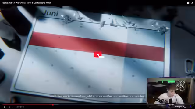 00:35:03Der Streamer reagiert auf ein Video von Simplicissimus über Crystal Meth. Er kommentiert die Aussagen von Ex-Konsumenten und stellt Fragen an den Chat, welche Drogen sie niemals nehmen würden. Er benennt Heroin, Fentanyl, Crystal Meth und die Krokodildroge als Beispiele. Während der Reaktion geht das Video auf die Geschichte des Medikaments Pervitin ein, das Methamphetamin enthielt, und zeigt, wie es im Dritten Reich und danach eingesetzt wurde. Der Streamer ist schockiert über die简单 Verfügbarkeit und die Geschichte der Droge.