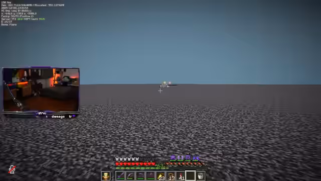 11:42:09Nach einem Server-Neustart funktioniert der Teleporter nicht mehr. Chunks laden nicht, Pfeile verschwinden oder sind nicht geladen. Der Streamer vermutet Server-Einstellungen (PaperMC), die Arrow-Deflektion nach Logins verhindern. Er testet verschiedene Lösungen: Erneutes Schießen des Pfeils, Platzierung zusätzlicher Stasis-Chambers, Chunk-Grenzen-Überprüfung. Ein Nutzer erwähnt einen bekannten Bug in Version 1.21.6. Letztendlich funktioniert der Teleporter sporadisch, aber nicht zuverlässig.