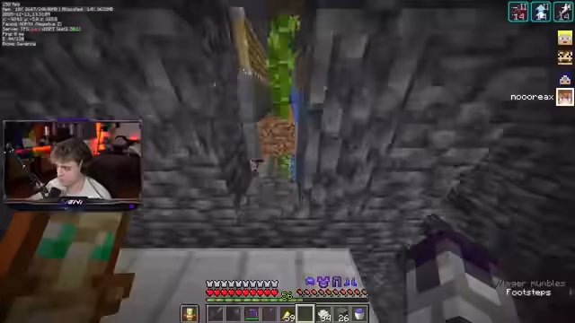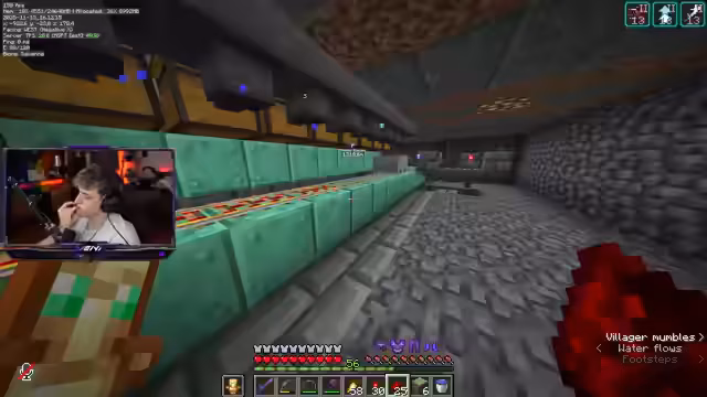 03:55:25Um die Farm zu erweitern, wird mehr Redstone, Quarz und Observer benötigt. Der Streamer fliegt daher zum GHG-Hub, um die notwendigen Ressourcen zu beschaffen und craftet anschließend weiter. Parallel tauchen technische Probleme auf, so werden Hopper bei der Ernte nicht angesteuert und ein Bambus wächst unkontrolliert, was den Ausfall der Farm verursacht. Zudem wird ein Golem-Villager durch eine Explosion getötet, was den Handel mit Sticks für das bevorstehende Event erschwert.