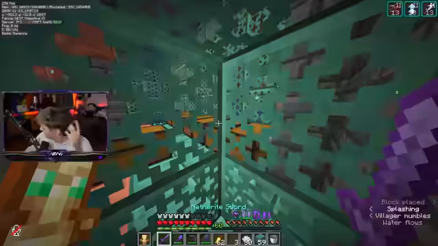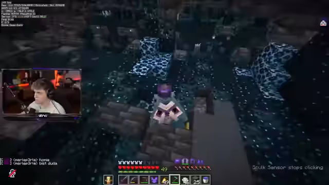 04:13:57Nach der Fertigstellung der Bambus-Farm wird das Ziel geändert, und der Streamer fliegt in das Deep Dark, um Amethystblöcke und Skulk-Sensoren für das Charity-Royale-Event zu farmen. Dabei ist er erstaunt über das geringe Spawnverhalten von Shriekers und Wardens, was den Farm-Prozess beschleunigt. Gleichzeitig äußert er sich zur Organisation des Charity-Royale, bedauert die mangelnde Teilnahme einflussreicher Streamer und betont den unkomplizierten Charakter des Events, bei dem Streamer auf eigenen Kanals für Spenden sammeln.