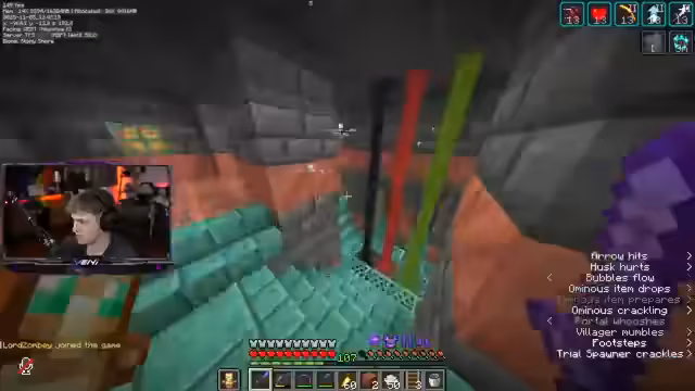 04:44:05Das automatische Lagersystem wird vorgestellt, in dem alle Items über Wasserrohre und Eisstrecken gesammelt werden. Es wird erklärt, dass Kupfergolems die Items später in die anderen Kisten bringen werden. Links befinden sich Bohnenblöcke, Rottenfleisch, Breeze Rods, Essen und Schlüssel. Die Ominous Vaults sind überall verteilt und können nur einmal geöffnet werden, aber die Spawner triggern immer wieder nach 30 Minuten. Es wird überlegt, ein Event zu veranstalten, bei dem viele Leute durchfahren, um viele Keys zu erhalten. Die noch nicht fertiggestellten Räume werden erwähnt. Es wird festgestellt, dass man mit Looting mehr Breeze Rods erhält. Das Lagersystem wird als 'crazy' und 'wirklich geil' empfunden. Die Möglichkeit, Trial Chambers abzuklappen und mit den Keys zu öffnen, wird erwähnt. Es wird überlegt, wie man ein gemeinsames GP-Raum haben könnte.