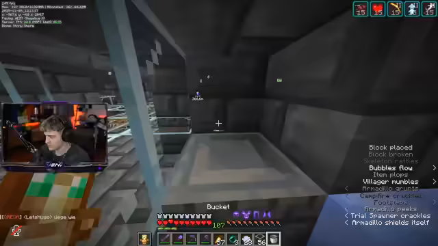 00:08:34Der Stream beginnt kurz vor 10 Uhr, und die Hauptziele für den Tag werden festgelegt: Erstens sollen Farben automatisch in die Lagerbatterie gefiltert werden, um Schlüssel und ähnliche Gegenstände zu sortieren. Zweitens ist der Bau einer Railgun geplant, wobei jedoch Zweifel an der Umsetzbarkeit geäußert werden. Die morgendliche Fahrt mit dem Minecraft-Zug dient dazu, die Trial-Spawner zu aktivieren und Schlüssel zu farmen. Es wird festgestellt, dass die Windchargers, die von den Breezes spawnen, einen Button aktivieren, der wiederum Silberfische spawnen lässt, was als großes Problem identifiziert und eine Lösung dafür gesucht wird, um die Spawner-Mechanik zu verbessern und ungewollte Spawns zu verhindern. Es wird überlegt, wie man den Button ersetzen kann, damit er nicht durch Windcharges betätigt wird, und verschiedene Redstone-Teile werden diskutiert.