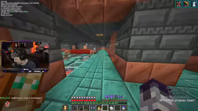 01:20:43Der Streamer arbeitet in Minecraft an einem großen Loch für eine Creeperfarm. Er erklärt, dass sein vorheriges Loch in einem Savannenbiom ungeeignet war, da Schneemänner, die für die Farm benötigt werden, dort nicht überleben können. Daher gräbt er nun ein zweites Loch in einem Stony Shore Biom, wo die Schneemänner überleben können. Er erläutert auch, wie er Windcharges durch das Aktivieren von Breeze Spawnern in seiner Trial Chamber Base erhält. Die Diskussion geht weiter über die Breite der Farm und die Effizienz des Abbaus, wobei er das Platzieren von Blöcken als willkommene Abwechslung zum Abbauen beschreibt.