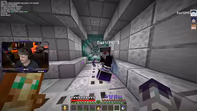 07:09:49Vini wird aufgefordert, alle seine Items in einen Hopper zu legen, die er später zurückerhalten wird. Er darf drei Totems behalten, aber kein Essen, da es sich um ein Gefängnis handelt. Basti erklärt die Regeln des Ori-Gefängnisses: Fullbright, Minimap, NF3 und Freecam sind verboten. Blöcke dürfen nicht abgebaut werden, außer Insta-Mine-Blöcke, jedoch keine Lichtquellen. Interaktionen mit Items und Looten sind erlaubt. Wichtig ist, sich an die Gefängnisregeln zu halten, keinen Stress anzufangen und die Zelle sauber zu halten. Tipps von außen sind nicht erlaubt. Vini wird in seine Zelle geführt und darauf hingewiesen, dass sein Stream beobachtet wird, er aber im Gruppengespräch stummgeschaltet ist. Er klärt noch die Nutzung von F3-Informationen ab, wobei Koordinaten erlaubt sind, aber das Scannen von Blöcken nicht.