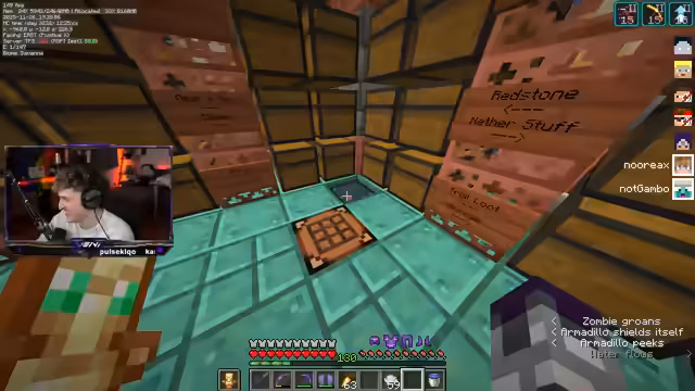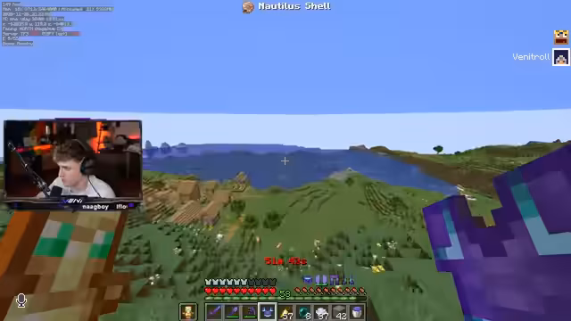 05:08:34Nachdem die Spieler das Gold-Weighted Pressure Plate hergestellt haben, konzentrieren sie sich auf das nächste Item: einen Loadstone. Dafür benötigen sie einen Kompass und Chiseled Stonebricks. Während ein Spieler im Nether nach den benötigten Materialien sucht, lootet der andere in der Oberwelt weiter. Es wird ein blaues Biom im Nether gesucht, das jedoch nicht in der Nähe des Spawns zu finden ist. Die Spieler diskutieren die Schwierigkeit, eine Nautilus Shell zu finden, die von Drowned gedroppt wird. Es wird beschlossen, dies nicht zu überspringen, sondern in einem Flussbiom oder Ozean bei Nacht danach zu suchen. Die Suche nach einem geeigneten Biom gestaltet sich schwierig, da die meisten Flüsse gefroren sind und Cold Oceans keine Drowned spawnen lassen. Ein Spieler findet schließlich einen Drowned in einem Ocean und kann eine Nautilus Shell erhalten. Das nächste Item, eine Lightning Rod, kann schnell hergestellt werden, da Kupfer vorhanden ist.
