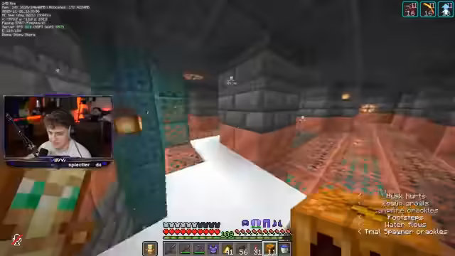 00:39:45Der Streamer wendet sich an Heiko, um Hilfe bei der Lösung seines Creeper-Farm-Problems zu erhalten. Er erklärt die Situation mit den sterbenden Schneemännern in der Savanne und fragt, ob es eine Möglichkeit gibt, dies zu beheben, oder ob er die gesamte Farm abreißen und woanders neu bauen muss. Heiko bestätigt, dass Schneegolems in Sub-Biomen sofort sterben und schlägt vor, ein anderes Farm-Design zu verwenden, das Wasser zum Spülen der Mobs nutzt, um das bereits ausgehobene Loch nicht komplett zu verschwenden. Dies würde den Bau von Glaspfeilern für Spinnen oder Half Slabs mit Wasserspendern auf einer Clock beinhalten. Der Streamer überlegt, ob er ein zweites Loch für ein effizienteres Creeper-Farm-Design mit Schneegolems graben soll, da dieses als effektiver gilt als wasserbasierte Farmen. Die Aussicht, erneut sechs Stunden Deep Slate abbauen zu müssen, demotiviert ihn jedoch stark, da es keine bekannte Methode gibt, Schneemänner in diesem Biom dauerhaft am Leben zu erhalten, selbst mit Powder Snow oder Fire Resistance.