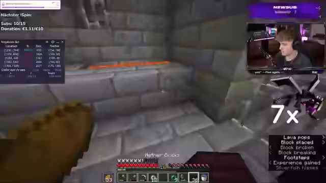 00:35:41Im Nether wird nach einer Bastion gesucht. Die Festung ist viel besser als die vorherige und direkt neben der Bastion. Es wird geprüft, ob die Mobius-Technik noch beherrscht wird. Ein Helm wird gecraftet, um sicher zu sein. Es wird mit Piglins gehandelt, um Obsidian und Feuerresistenztränke zu erhalten. Der erste Run soll sicher sein. Genug Blöcke und Perlen sind vorhanden. Es wird überlegt, ob ein weiteres Pipo Sprint stattfinden soll. Nach dem Blinden wird durch die Lava getravelt. Koordinaten führen direkt zum Stronghold. Der Ninja Brain Bot funktioniert nicht richtig. Es werden Strings für sichere Betten mitgenommen. Der erste Run wird nach 30 Minuten abgeschlossen. Nach dem ersten Run muss das Rad gedreht werden. Das Ergebnis ist Glas Wasser Echsen.