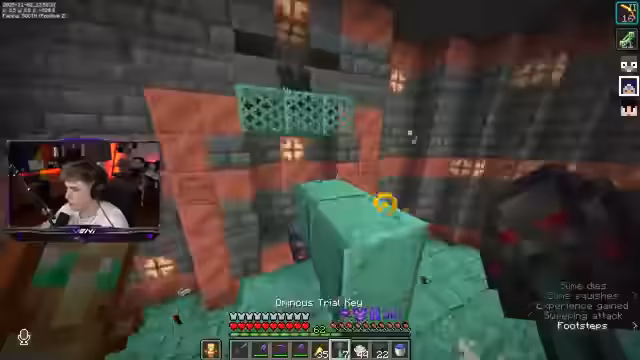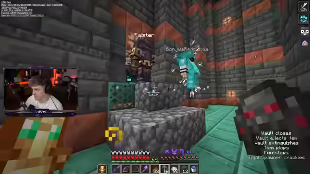 02:41:04Die Spieler setzen ihre Erkundung einer Trial Chamber fort, wobei sie sich durch verschiedene Ebenen bewegen und Mobs bekämpfen. Es wird über die Effizienz des Sneakens beim Heruntergehen gesprochen und die Anwesenheit von Wasser in der Kammer wird positiv bewertet, da es das Bewegen mit dem Dreizack erleichtert. Während der Erkundung werden Schlüssel gesammelt, die zum Öffnen von Vaults benötigt werden. Es kommt zu einer humorvollen Verwechslung bezüglich des Namens 'Leon von Bonchor', der für einen adeligen Namen gehalten wird, tatsächlich aber eine Anspielung auf eine Gruppe von Streamern ist. Die Spieler diskutieren auch über die Seltenheit bestimmter Gegenstände wie Windburst-Bücher und die allgemeine Schwierigkeit, diese zu finden. Die Trial Chamber erweist sich als anspruchsvoll, aber die Spieler sind motiviert, weiterzumachen, um die gewünschten Belohnungen zu erhalten.