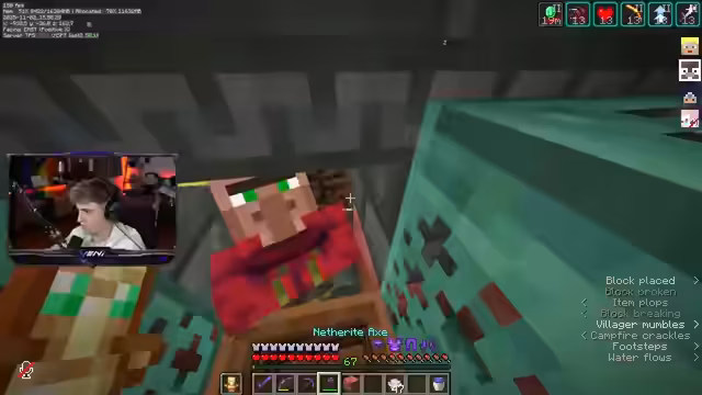 04:34:40Der Streamer äußert seine Frustration über die Schwierigkeit, in seiner Trial Chamber 'Trial Omen' statt 'Bad Omen' zu triggern, da überall Villager aufgrund von Eisenfarmen und Trading Halls sind. Er überlegt, wie er eine Vorrichtung bauen kann, um dies zu umgehen, möglicherweise durch das Triggern in einer anderen Trial Chamber. Es wird auch über Redstone-Projekte gesprochen, wobei ein Spieler scherzhaft vorschlägt, dem Streamer acht Tonnen Redstone vor die Tür zu kippen, um zu sehen, was er damit anfängt. Die Community erinnert sich an einen Clip, in dem JoCraft von den Redstone-Fähigkeiten des Streamers beeindruckt war. Die Spieler diskutieren auch über die besten Trades für Farmer-Villager, insbesondere den Gold-Karotten-Trade.