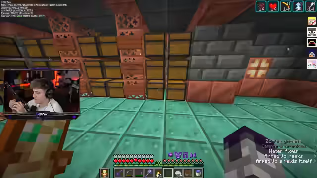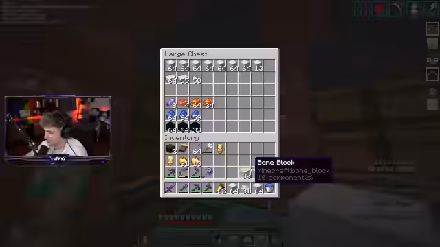 00:28:15Der Streamer beginnt mit der Sortierung von Kisten, da die Netherdecke erneut mit Golems überfüllt ist. Es wird eine Struktur für Ressourcenkisten festgelegt, wobei wertvolle Materialien wie Eisenblöcke, Obsidian, Lapis und Amethyst in einer Kiste gesammelt werden sollen. Eine separate Kiste ist für Redstone-Materialien vorgesehen, und es wird überlegt, eine weitere für Mob-Drops aus Trial Chambers zu erstellen. Die Organisation der Kisten soll durch Schilder oder Item-Frames verbessert werden, um eine bessere Übersicht zu gewährleisten. Es wird auch die Idee diskutiert, Knochen zu Knochenblöcken zu verarbeiten, um Platz zu sparen und eine potenzielle Knochenmehl-Farm zu unterstützen, was als „Big GG“ für unendlich Knochenmehl angesehen wird.