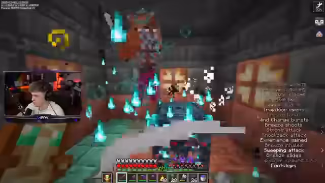 03:01:23Die Gruppe entdeckt eine Trial Chamber, die bereits von anderen Spielern abgebaut wurde, was die Suche nach Ressourcen erschwert. Trotzdem beschließen sie, die Kammer zu betreten und sich den verbleibenden Mobs zu stellen. Der Kampf gegen Baby-Zombies und Breezes erweist sich als besonders herausfordernd, da diese Gegner sehr stark sind und die Spieler oft durch die Luft schleudern. Es wird die Notwendigkeit diskutiert, Baby-Zombies in einem zukünftigen Minecraft-Update zu 'nerfen', da sie als zu mächtig empfunden werden. Während des Kampfes werden weitere Schlüssel gesammelt, die zum Öffnen von Vaults verwendet werden. Die Spieler bemerken, dass Spinnenspawner im Vergleich zu anderen Mobs als am entspanntesten empfunden werden, da Spinnen weniger bedrohlich sind. Die Suche nach dem Windburst-Buch bleibt weiterhin ein zentrales Ziel, und die Spieler sind bereit, weitere Anstrengungen zu unternehmen, um es zu finden.