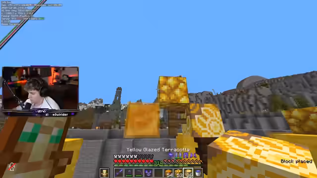 00:15:12Der Bauprozess am Biom nimmt konkrete Formen an, wobei spezifische Blöcke wie Wolle, Terracotta, Honigblöcke und Raw Gold Ore eingesetzt werden. Es gibt intensive Diskussionen über Designentscheidungen, insbesondere zur Platzierung von Zäunen, Trapdoors und Banner-Elementen. Der Streamer orientiert sich stark an der ursprünglichen Vorlage von Faister, experimentiert aber auch mit eigenen Anpassungen für mehr strukturelle Fragilität. Parallel werden technische Herausforderungen wie Block-Platzierungen und Farm-Effizienz thematisiert.