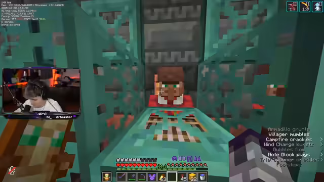 04:05:00Veni testet die von Johann gebaute Achterbahn "Timber Journey" mit integrierten Mob-Schauplätzen und einem Freefall-Tower. Er lobt das aufwendige Design und das Queue-System zur Vermeidung von Kollisionen. Im Anschluss experimentiert er mit Windcharges und Amor-Ständen, um eine Zündschnur-Mechanik für zukünftige Spiele zu entwickeln. Dabei werden physikalische Eigenschaften von Blöcken wie Chains und Cobwebs analysiert, um konsistente Effekte zu erzielen.