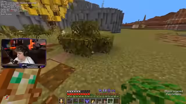 04:13:40Der Streamer plant den Bau einer Zündschnur, die auf den Happy Ghast zuläuft, inspiriert von Dynamit in der Wüste. Er erwägt Feuereffekte für das Design und testet verschiedene Gestaltungsmöglichkeiten. Dabei zeigt er bereits fertige Teile seines Bioms und navigiert durch unterirdische Gänge, um Materialien zu sammeln, wobei er sich mehrfach verläuft. Gleichzeitig diskutiert er die Blockvielfalt seines Projekts und betont, wie sehr ihn das Terraforming fesselt.