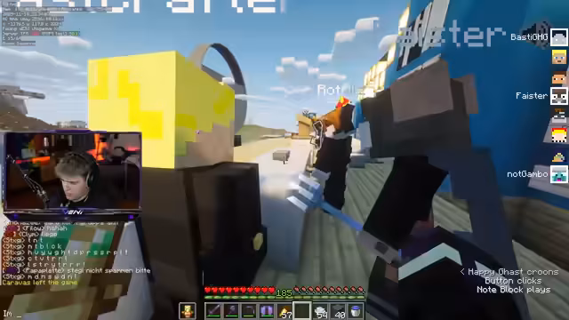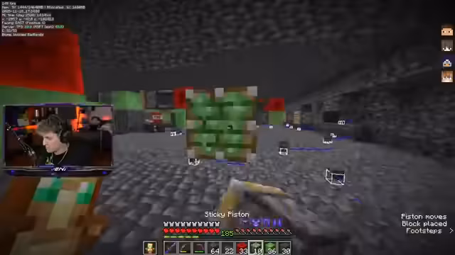 04:57:26Der Streamer informierte die Zuschauer über eine Verlängerung des Follower-Modus aufgrund aktueller Umstände und bat um Nachsicht. Er wechselte dann zu einem anderen Projekt: dem Abbau von Bedrock. Er zeigte sich begeistert von der Möglichkeit, Leute auf Twitch zu bannen, sodass sie den Stream nicht mehr sehen können. Es wurde ein "Anti-Vax-Cage" für die Raid-Farm erwähnt, und Hugo wurde als Ansprechpartner für Cages genannt. Der Streamer passte die Chat-Einstellungen an, um eine Woche Follower-Modus zu aktivieren, um "komplette Ruhe" zu haben. Er erklärte, dass die "Minas Tirith Avengers" damit beschäftigt waren, Bedrock abzubauen, und scherzte über Hugo, der als Biene fleißig sei. Die Methode des Bedrock-Abbaus mit Pistons wurde detailliert erklärt und als "crazy" und "Magie" bezeichnet. Die Herausforderung bestand darin, die Blöcke schnell zu ersetzen und die Maschine präzise zu steuern. Es wurde diskutiert, wie man am besten eine Linie von Bedrock abbaut, und der Streamer überlegte, die Maschine zu verschieben, um effizienter arbeiten zu können. Die Arbeit am Bedrock-Abbau war schweißtreibend und erforderte viele Pistons. Es wurde auch über die Möglichkeit gesprochen, Happy Ghasts zu nutzen, um die Pistons aufzufangen. Der Streamer kündigte weitere Events an und musste sich von einem Mitspieler verabschieden, der offline gehen wollte. Die Arbeit am Bedrock-Abbau ging weiter, wobei immer wieder Pistons verloren gingen und neue Strategien entwickelt wurden, um die Maschine optimal zu nutzen und das Redstone-Signal korrekt zu platzieren. Die "One-Tick-Machine" wurde als verbuggt, aber effektiv beschrieben, da sie einen besonderen Redstone-Impuls erzeugt, der den Piston antreibt.