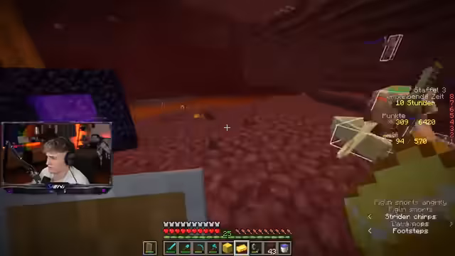 02:29:49Als die Sonne untergeht, gerät ein Streamer in akute Gefahr, nur noch überlebenswichtige Ressourcen zu besitzen, insbesondere Nahrung. Mit nur noch zweieinhalb Herzen und leerem Inventar kämpft er gegen den Hunger, wobei er auf Hilfe von seinem Teamkollegen angewiesen ist, der ihm überlebenswichtige Nahrungsmittel bringt. Die Konzentration liegt auf dem Überleben der Nacht, bevor das Team sich den anstehenden Herausforderungen zuwenden kann.