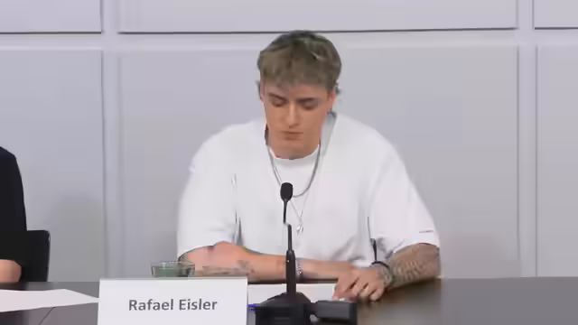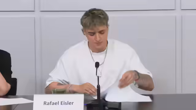 00:33:40Die Entführung fand 80 Seemeilen vor Gazas Küste in internationalen Gewässern statt – eine gewalttätige, bewaffnete Piraterieaktion. Inhaftierte wurden als Terroristen behandelt, in Stresspositionen gezwungen und rassistisch selektiert. Aschraf erhielt rassistische Drohungen. Alle wurden mit Kabelbindern gefesselt und in eiskalten Gefangenentransporten eingesperrt, bei Protesten mit 'Fuck Palästina' kommentiert. Es fehlte an medizinischer Versorgung (z. B. Asthma, Diabetes), täglichen Telefonaten und Ausgang. Diese Praktiken erfüllen Folterkriterien.