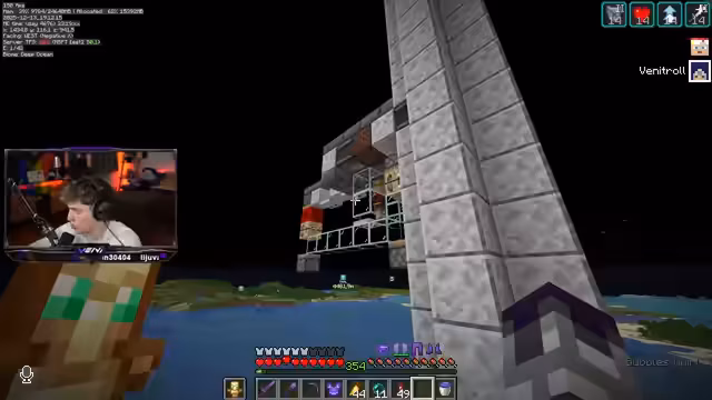 01:10:43Der Streamer erklärt die Gunpowder-Farm, die Schießpulver für die Railgun produziert, bei der jeder Schuss 50 TNT benötigt. Er plant eine Schalker-Farm im End, um Diebstahl zu verhindern und Teleporter zu nutzen. Später diskutiert er Optimierungen wie das Zubauen der Farm, um despawnende Items zu vermeiden, und erwähnt, dass er aufgrund der Leerheit des Servers Cheats nutzt.