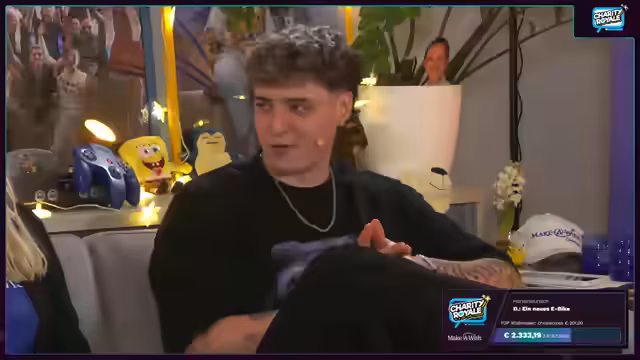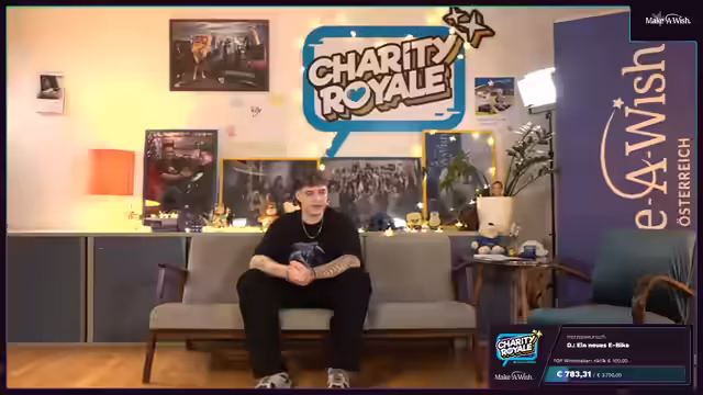 00:19:24Der Charity-Royale-Finale-Stream wurde live aus dem Make-A-Wish-Büro in Wien gestartet. Zuer gab es leichte technische Audio-Probleme, die behoben wurden. Der Streamer begrüßt das Publikum und stellt das spezielle Setting mit mehreren Kameras und einem Hintergrund mit Fotos aus vergangenen Charity-Events vor. Er kündigt an, dass der Stream den Charity-Monat im November beschließen und einen weiteren, letzten Herzenswunsch für ein schwerkrankes Kind erfüllen wird. Der Wunsch, ein E-Bike für den 16-jährigen D. mit Mukoviszidose, wird vorgestellt, für den bereits 700 Euro gesammelt wurden.