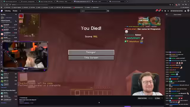07:57:35Der Streamer zeigt Fallensysteme, die er gebaut hat, wie z.B. Wasser-Fallen in Verbindung mit Trip-Hooks. Es kommt jedoch zu einem kritischen Fehler, bei dem Mike von einer Trappe in einen Lavasee fällt, weil das Wasser über ihm entfernt wurde. Dies führt dazu, dass Mike stirbt und sein Totem verloren geht. Der Vorfall wird als ein Fehler im Teamkommunikation und strategischer Umsetzung gesehen, was den Streamer verärgert.